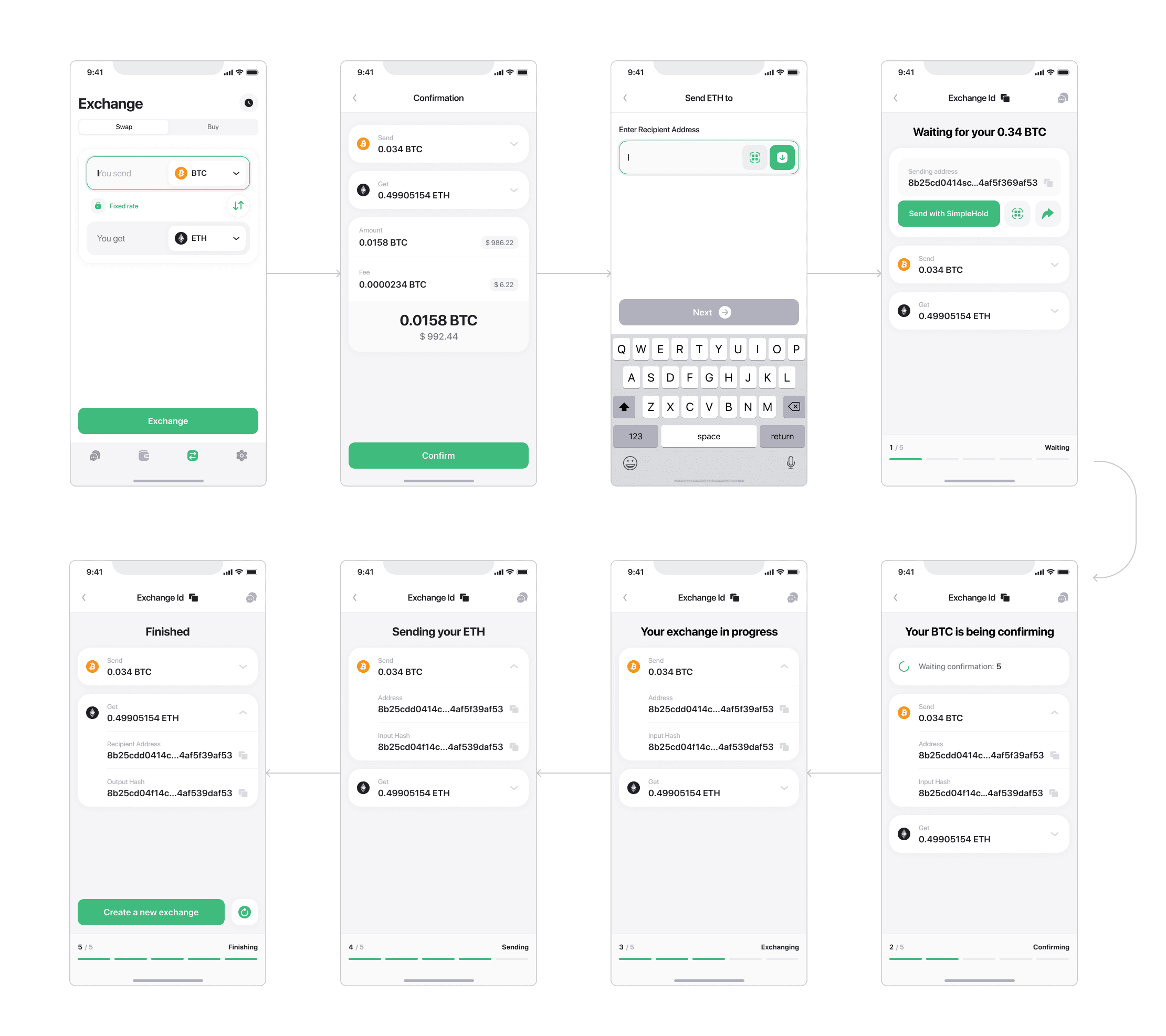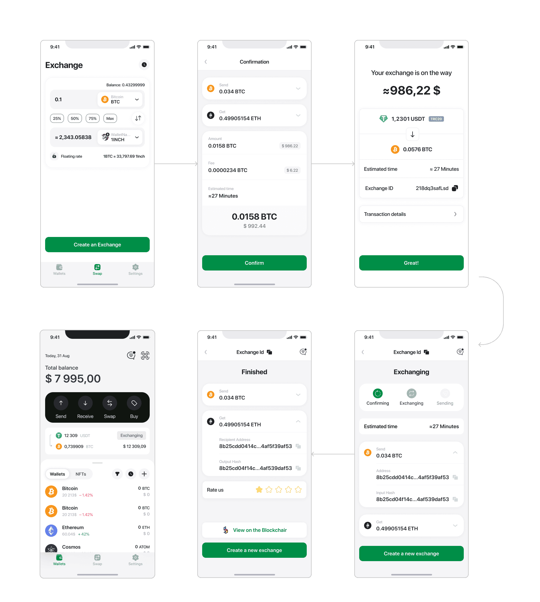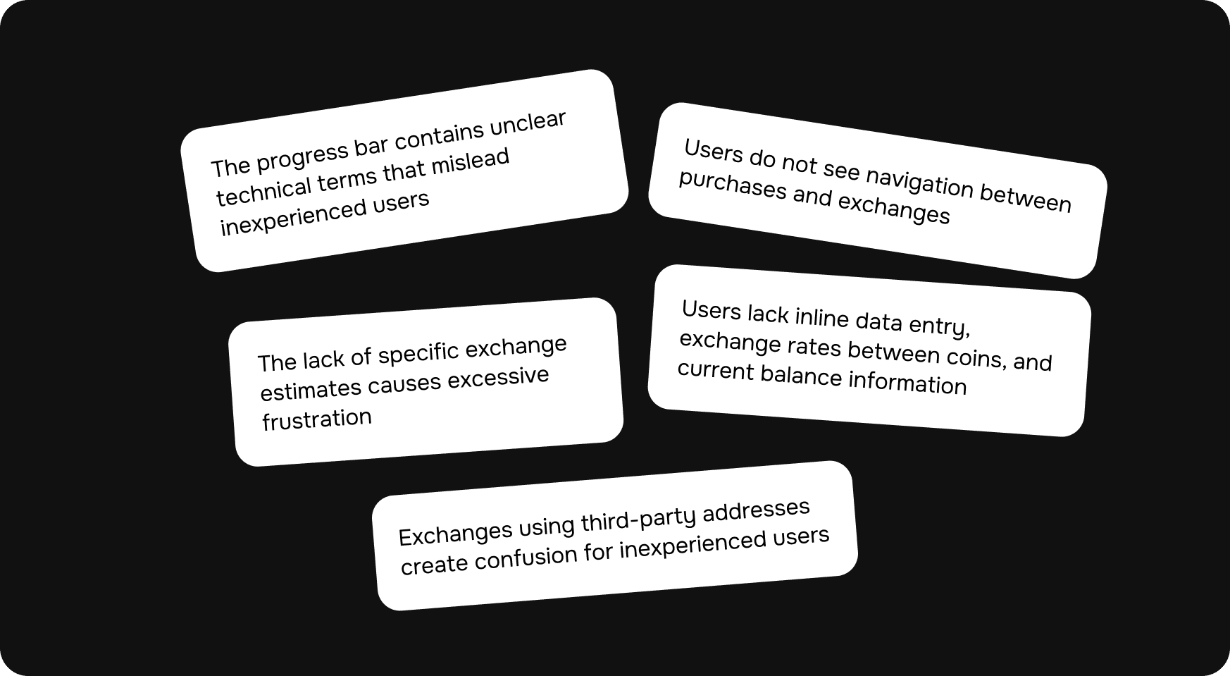 Despite high traffic, a large percentage of users didn’t complete the exchange flow. Moreover, over 50% of completed exchanges were made through external wallet addresses, which meant funds didn’t stay within our ecosystem. As a result, we missed out on potential revenue from future transactions – a critical issue for the product’s value and business performance.